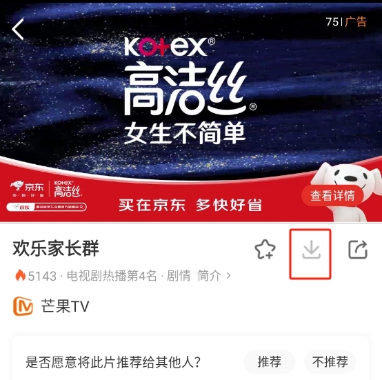 2、打开一个你喜欢的视频,点击下载图标