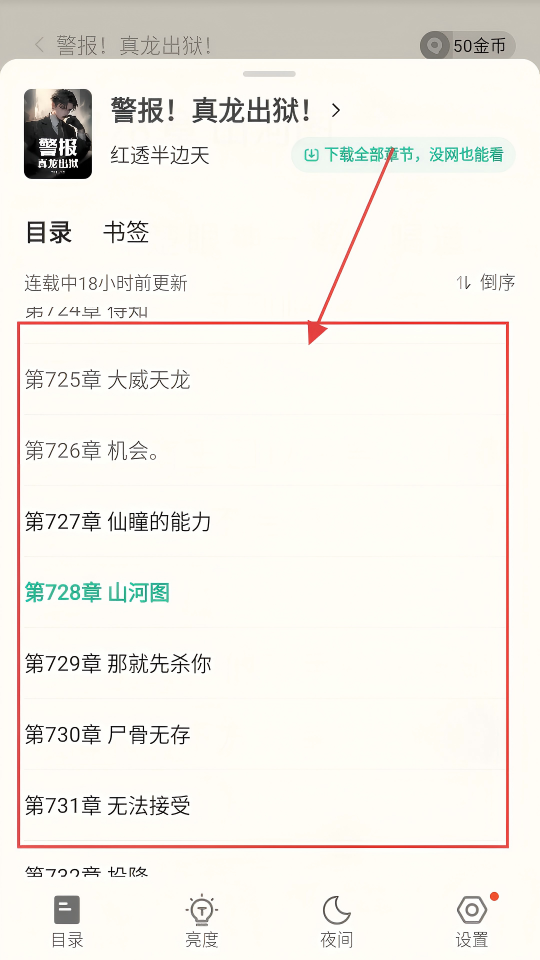 3、在小说目录里,能看到各章节列表,找到想看的章节,点击它就能快速跳转阅读。