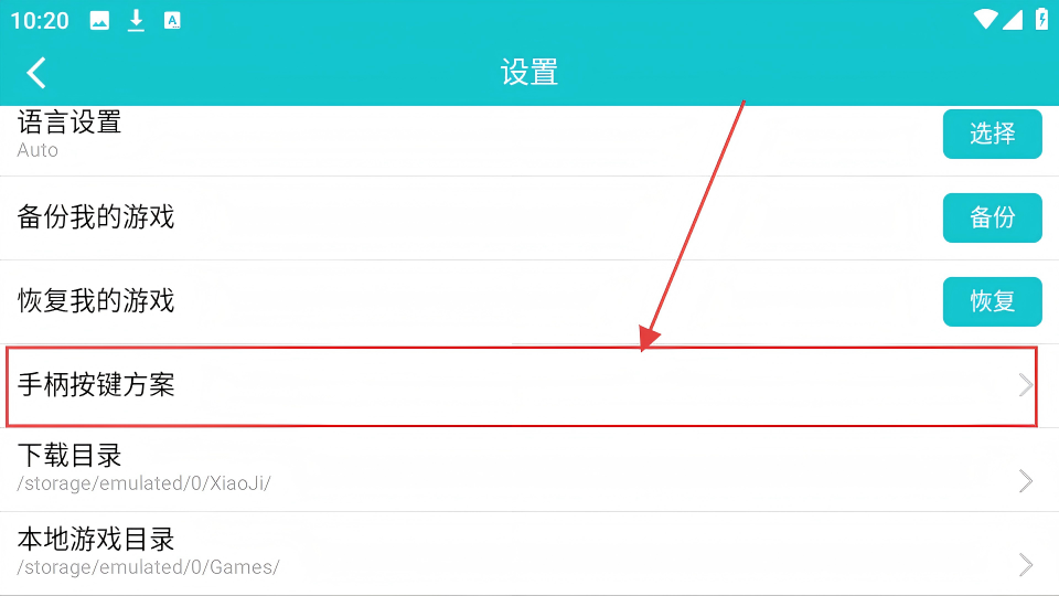 2、设置页面里,找到【手柄按键方案】,点击它可进入手柄设置相关页面,很方便。