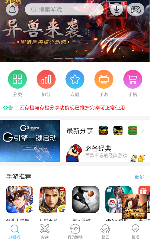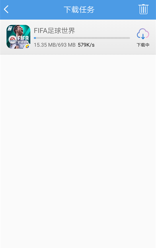 2、游戏下载中途,可以触摸界面右上角的图标进入下载任务管理页面。在此处,触摸名字右侧可进行继续“下载/暂停”的切换,触摸游戏名字并确认之后就可以取消游戏的下载。