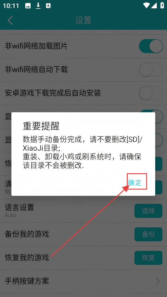 4、备份完成后,会弹出重要提醒,点击【确定】,就完成游戏数据备份流程啦。