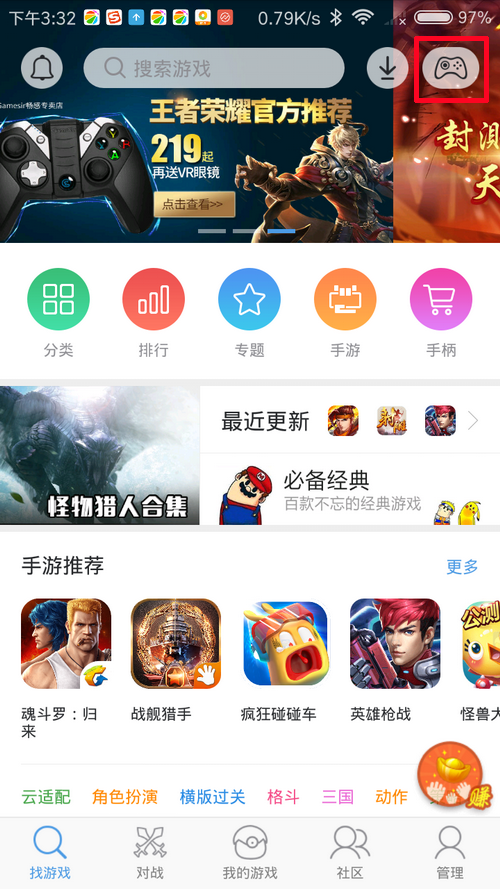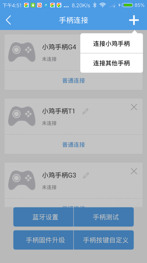 1、通过点击右上角手柄图标后即可以进入手柄连接界面。