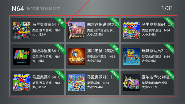 2、进入分类页后,选择对应平台分类(比如【N64】),就能看到该平台下的所有游戏列表哦。