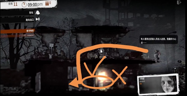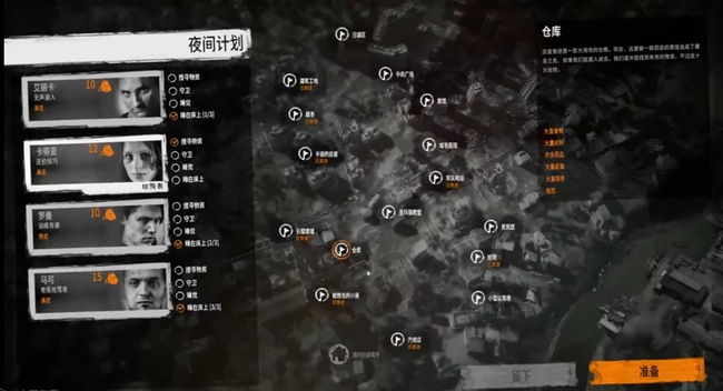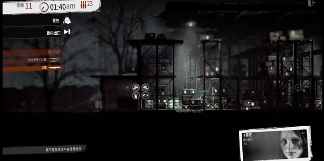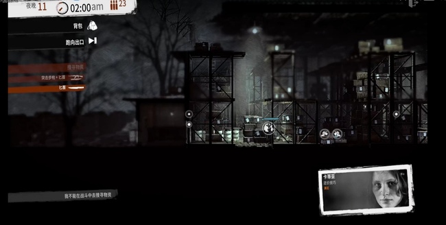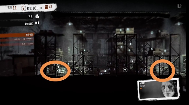 1、首先在晚上选择去仓库,一个把小刀就够了,人物随便选杀土匪不掉心情。人道救援物资被这帮人抢了,我们是劫富济贫。