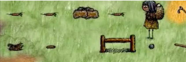 1、打开游戏,首先用钢锛和叠在一起的长直木棍做成栅栏组件。(需要做很多个)