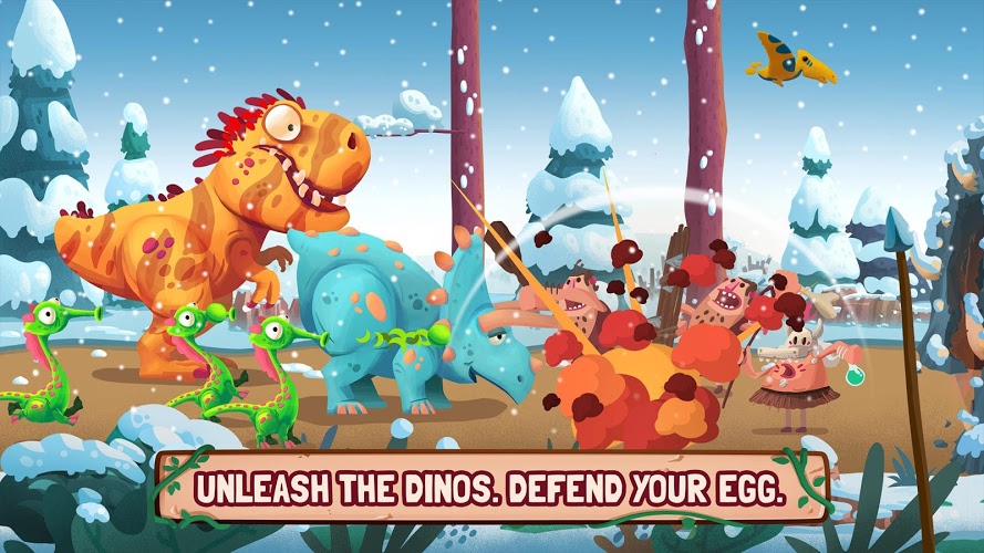 恐龙保卫战游戏召唤火山弹,冰岩,隐藏的陷阱,恶性暴风雪和诱骗鸡蛋对这些入侵傻瓜,瞄准和打击。