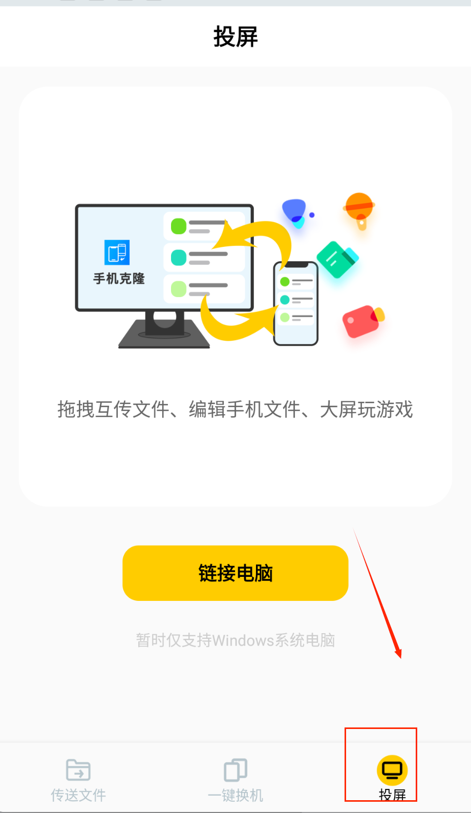 1、投屏功能不仅限于文件传输,连接电脑后还能大屏玩游戏。在投屏页面建立连接,就可以在电脑大屏幕上操作手机应用。
