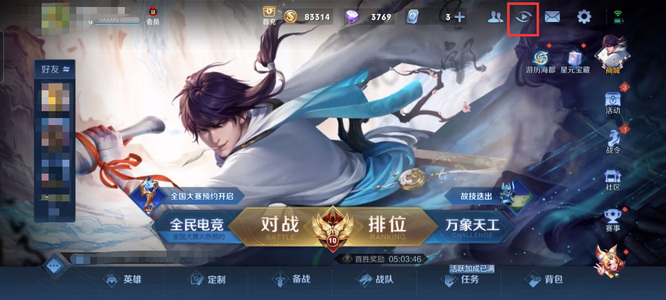 第一步:在王者荣耀的首页点击顶部播放图标。