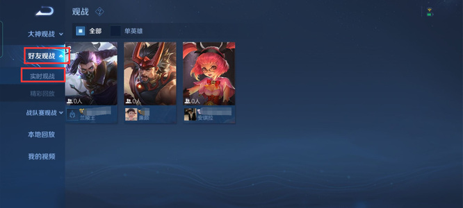 第二步:点击好友观战,在点击实时观战,点击想要观看的比赛。