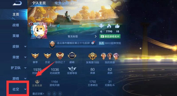 3、在交友名片中我们可以看见自己之前的荣耀战区定位,我们点击后面的定位标志。