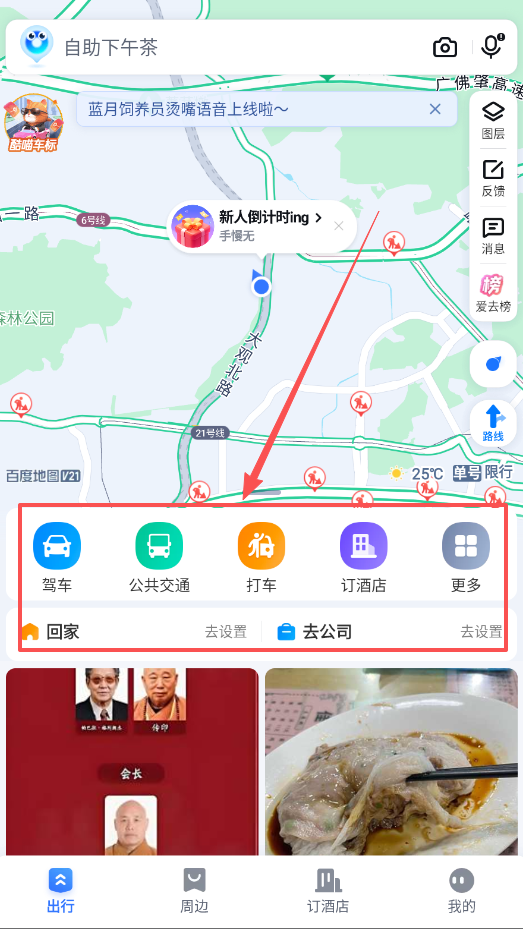 2、把家和公司地址设置好,日常通勤就变得很简单。首页会给你推荐像“茶的世界”这样的特色地点。