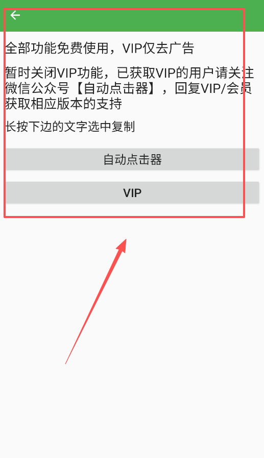 4、该软件完全免费使用,vip服务仅用于去除广告,若你已是vip用户却仍见广告,可前往微信公众号自动点击器。