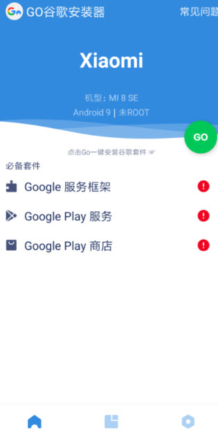 下载GO谷歌安装器,打开后在主界面点击GO即可一键安装谷歌框架