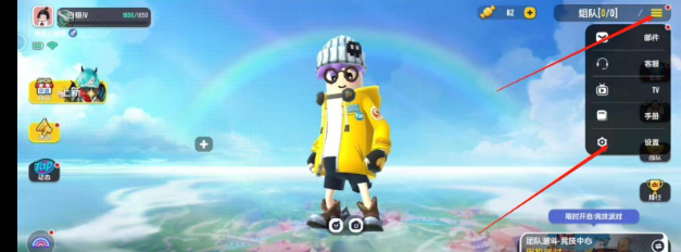 1、首先进入游戏后,点击右上角的展开图标后再点击设置进入到设置内。