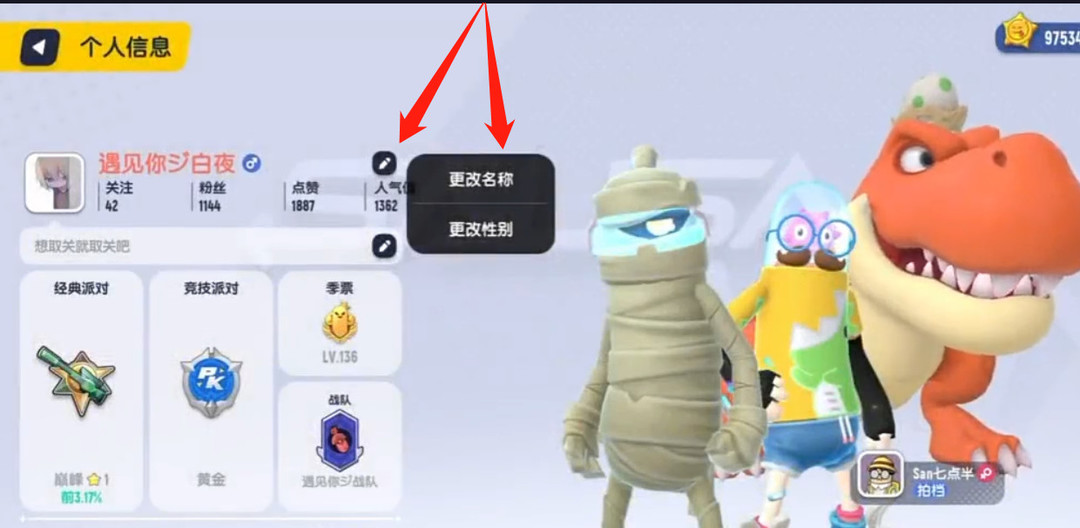 更变名字颜色需要玩家使用改名卡重新改名,然后点击左上角的头像,再人气值界面中点击更改名称选项,如图所示