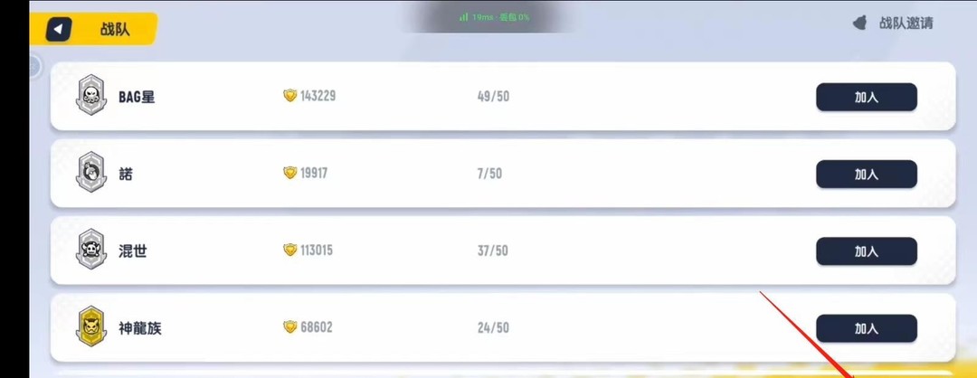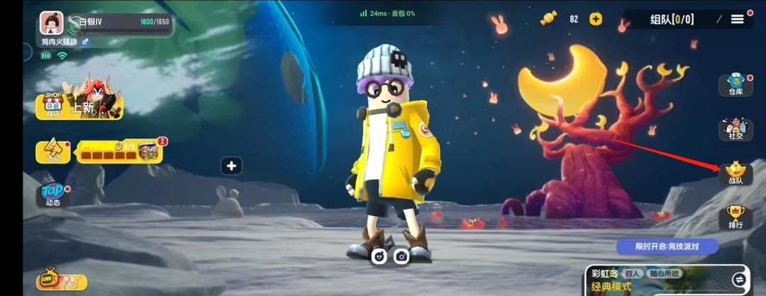 首先进入游戏后,点击右侧的战队进入到战队界面