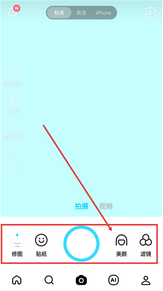 4、视频拍摄:这款软件不仅支持拍照,还支持录制视频,并提供了多种视频滤镜和美颜效果,让你的视频更加精彩,它还有美颜功能也是必需品,开启美颜,自动修复五官缺点。