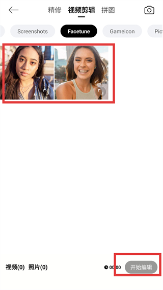 2、进入素材选择页后,选要编辑的内容,再点【开始编辑】按钮就能进入剪辑界面哦。