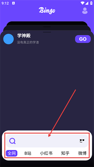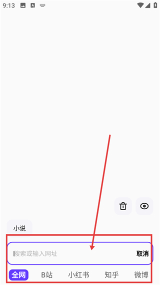 1、在首页点底部搜索框,可选择【全网】【B站】等渠道,后续输入关键词就能搜索对应内容啦。