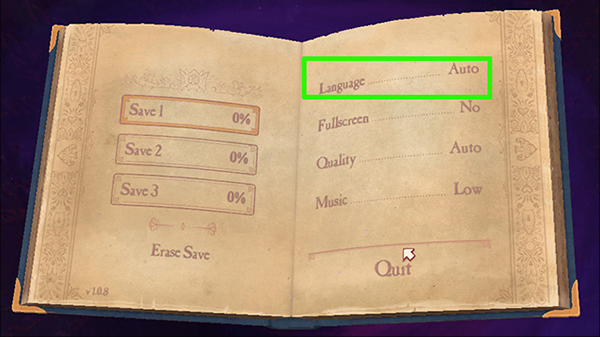 3、这里需要玩家点击绿色方框内的language一栏的选项更换中文(鼠标左、右键可以来回切换语言);