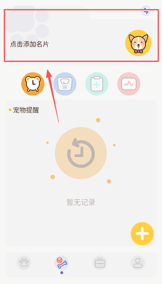 二、第二步,给它做个数字小家。点一下“添加名片”,把你家毛孩子的照片、生日都记下来。