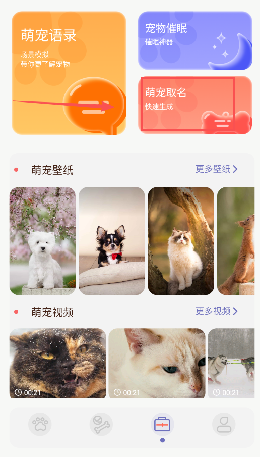 三、第三步,来玩点有趣的功能,有能帮你给宠物起名字的生成器,有假装和宠物在不同场景的游戏。