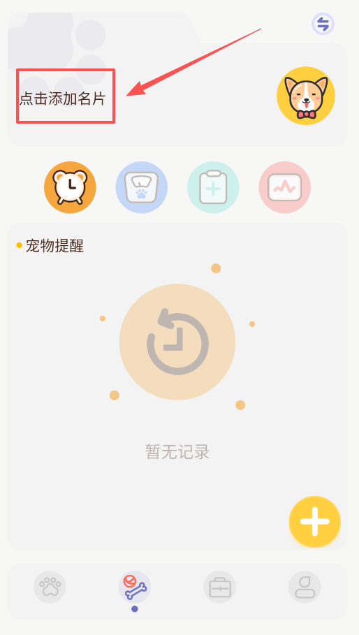 二、接着,给它建个小档案。点击“添加名片”,把自家宝贝的信息存进去。
