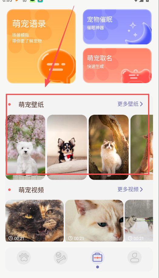 三、再者,探索软件的各种趣味功能,在发现页,你可以体验宠物催眠、智能取名等工具,浏览萌宠语录和壁纸。