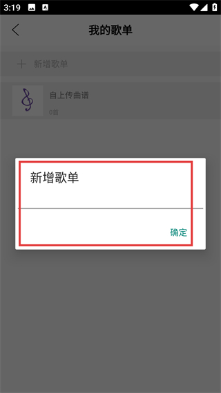 3、在弹出的新增歌单输入框里填好名称,点击【确定】按钮,就能成功创建一个新的歌单啦。
