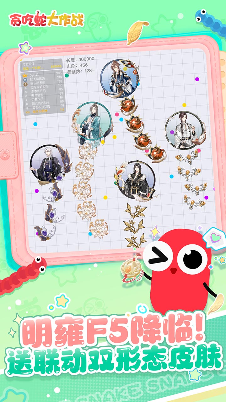 贪吃蛇大作战x花亦山心之月联动活动将于9月30日开启,五大男主皮肤精美上线,免费拿下,福利满满~
