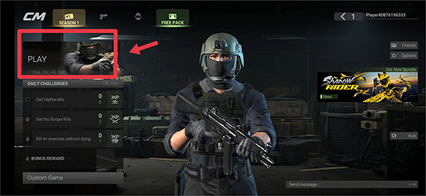1、首先打开游戏,游戏需加速器启动,在游戏主界面中,点击paly开始匹配玩家;