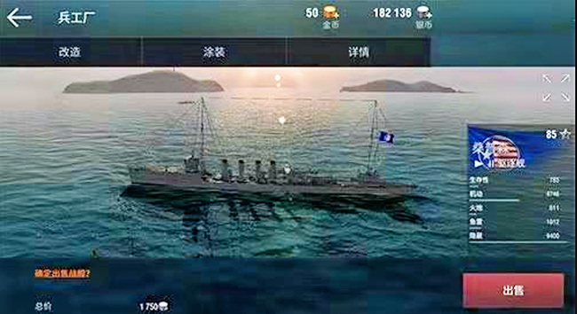 2.在兵工厂里面,在上面的选项栏里面,在*右边可以看到出售,就可以把不需要的战舰给出售掉。