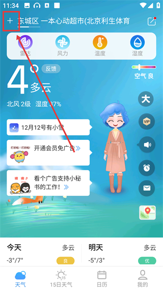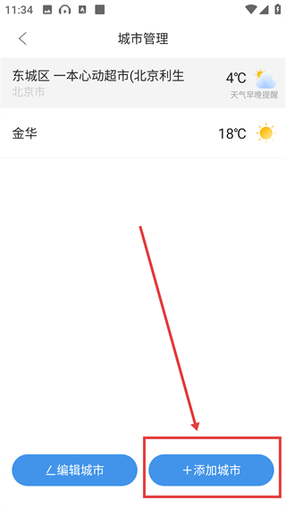 1、在天气页面点击左上角的加号按钮,就能进入城市管理页面,进行城市的添加或编辑操作啦。