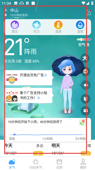 2、逐小时和逐日预报:软件提供逐小时和逐日的天气预报,用户可以提前了解未来几小时或几天的天气情况,合理安排活动和出行,让用户了解当地的环境状况。