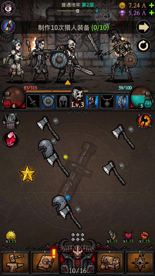 2、装备合成:合成地牢提供了丰富多样的装备合成系统,玩家可以通过收集和合成各种装备,来打造属于自己的专属装备,展示自己的实力和策略。