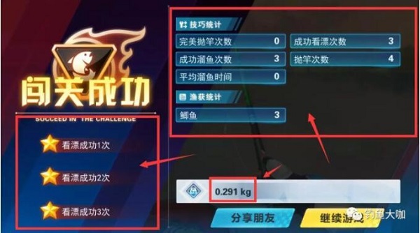 钓上鱼后有很多信息在这个版面显示出来,有鱼的重量、体型、水层、食性……