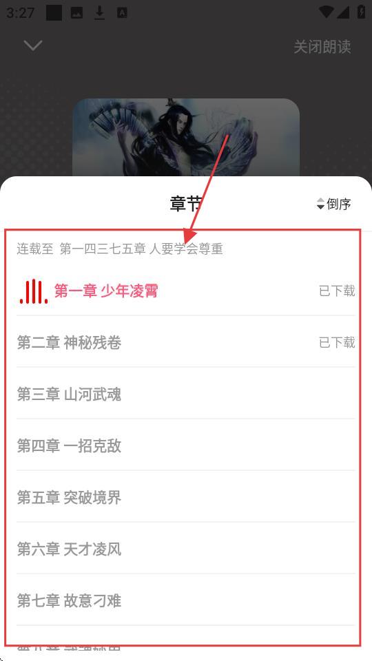 4、在章节列表里,能看到各章节名称,点击想收听的章节,就能直接跳转至该章节的听书内容啦。