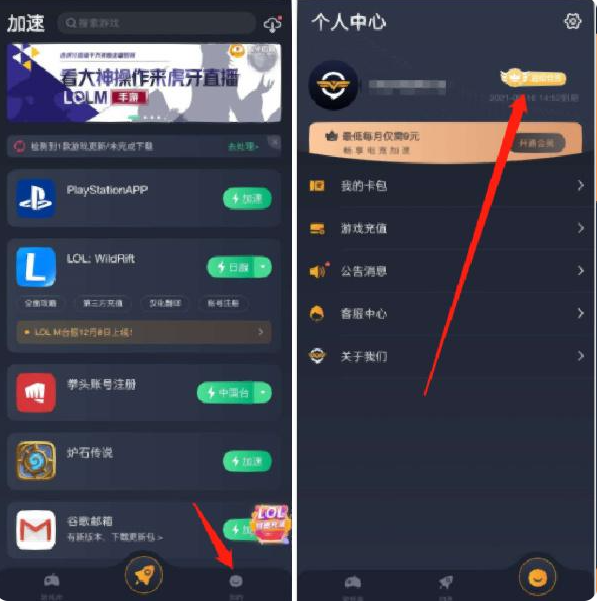 首先是需要玩家打开奇游加速器,在进入到主界面之后就可以点击我的按钮。