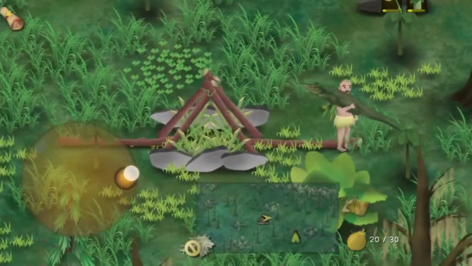 4.制作好大渔网之后,将它放置水湖中,最好离甲鱼洞近点。如果想快点猎到甲鱼,得要放种子当诱饵。种子可以在挖取番薯、生姜,掏鸟蛋,捡粪便中获得。