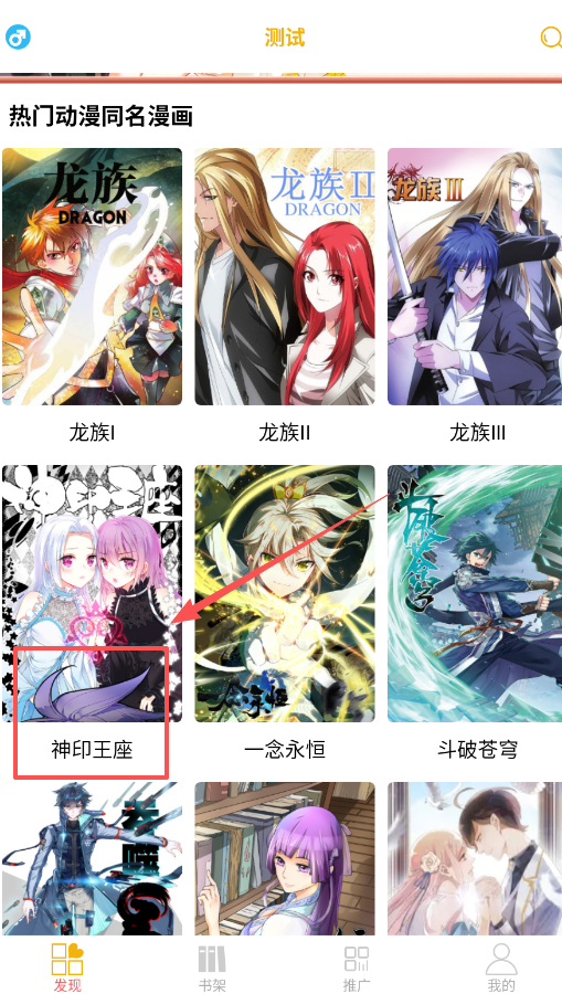 1、想要找热门漫画改编作品,可以从首页的“热门动漫同名漫画”区域入手,比如直接点击“龙族”或“神印王座”的封面。