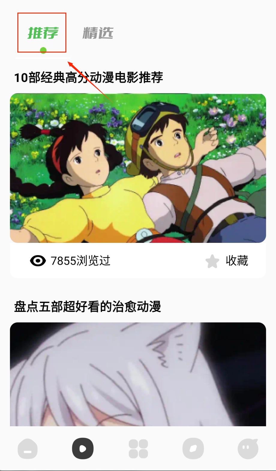 3、每个推荐都有"收藏"按钮,遇到心仪的作品记得点亮小心心,这样就不会错过更新,还能生成个人专属片单。
