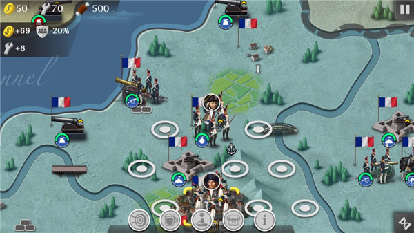 1、拿破仑战争背景:游戏以拿破仑战争为背景,精细还原了当时的历史情境,包括各个国家的势力对抗、战场的地形和气候等。玩家可以在游戏中体验到这场战争的真实感。