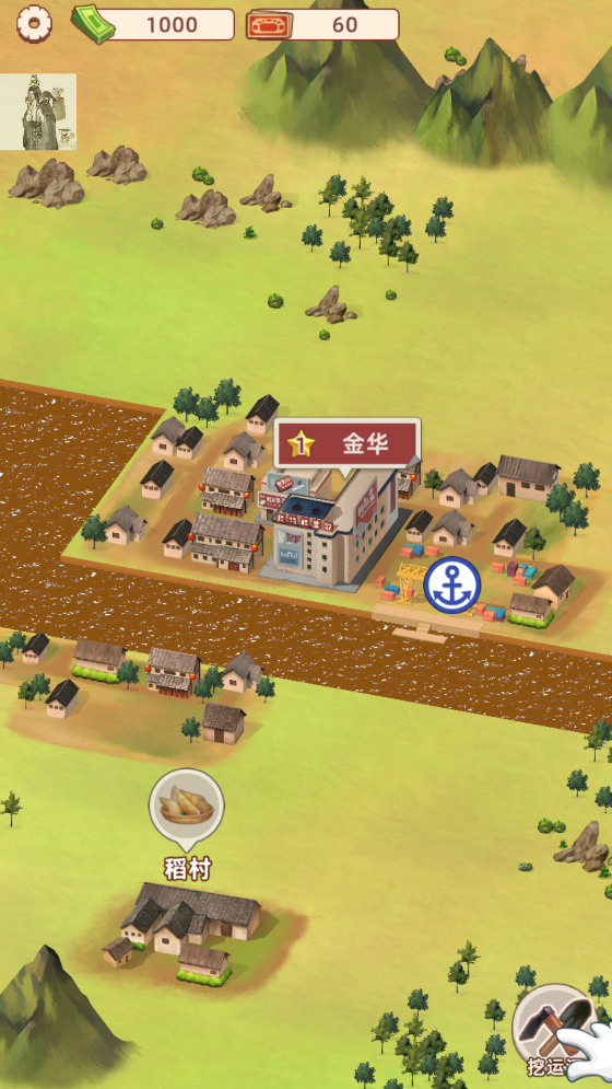 1、进入游戏后点击右下角挖运河,接取主线任务挖通稻村到金华的小运河。