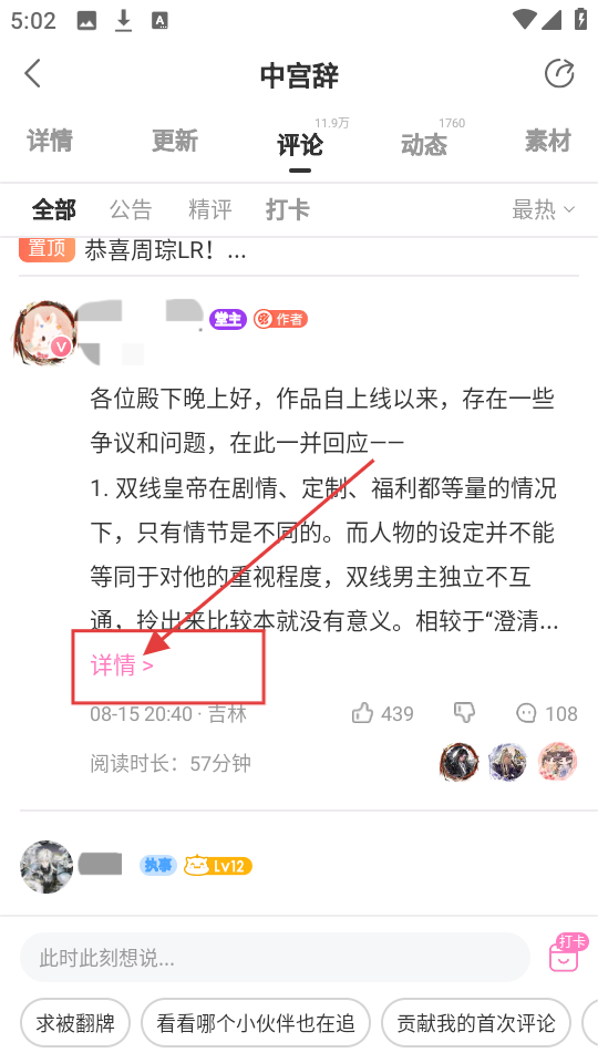 3、在评论区里,若看到有“详情”按钮的评论,点击【详情】,就能查看完整的评论内容啦。