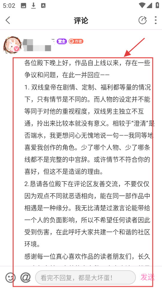 4、点击【详情】后,就可以看到完整的评论,能更全面地了解其他读者的看法和作者的回应啦。