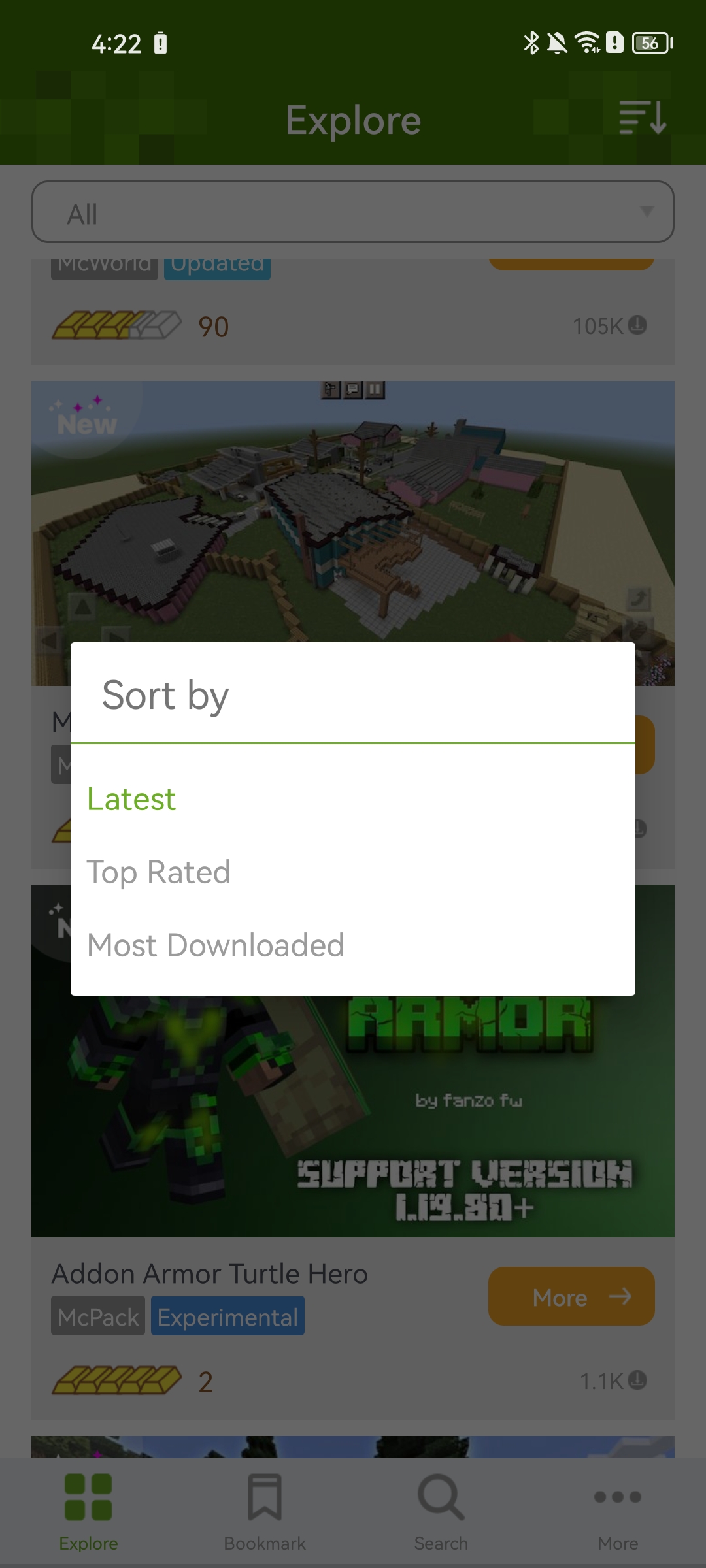 4、在【explore】探索页面可以点击右上角,最近的,最受好评的,下载量最多的,不知道玩什么游戏就可以参考这
