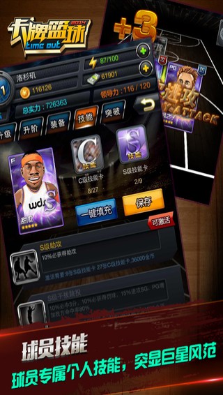 3、深度养成:篮球卡牌对战手游提供了丰富的养成系统,玩家可以通过培养球员、升级卡牌、强化技能等方式提升球队实力,解锁更多的篮球明星和特殊技能,打造自己的最强阵容。
