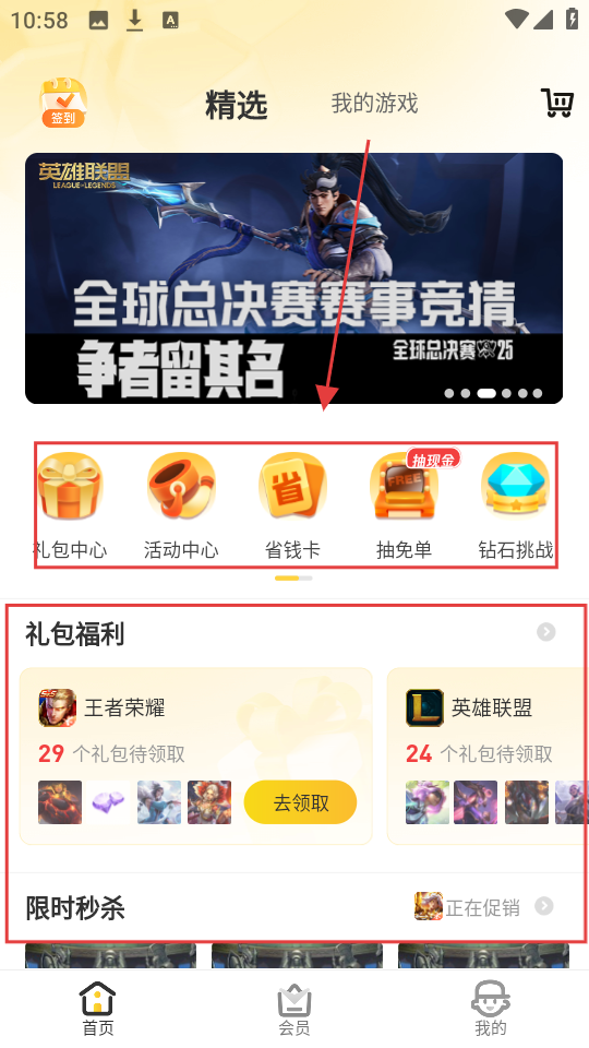 1、在首页有【礼包中心】【活动中心】等功能,还有礼包福利板块,快去领取喜欢的游戏礼包吧。