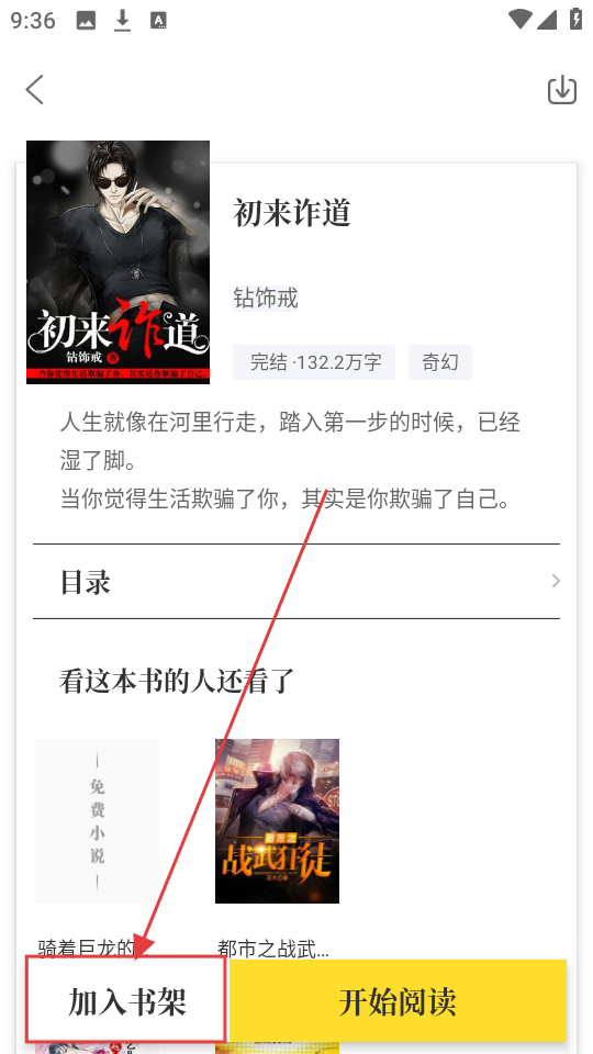 2、小说详情页点【加入书架】,将小说加入书架,方便后续阅读啦。