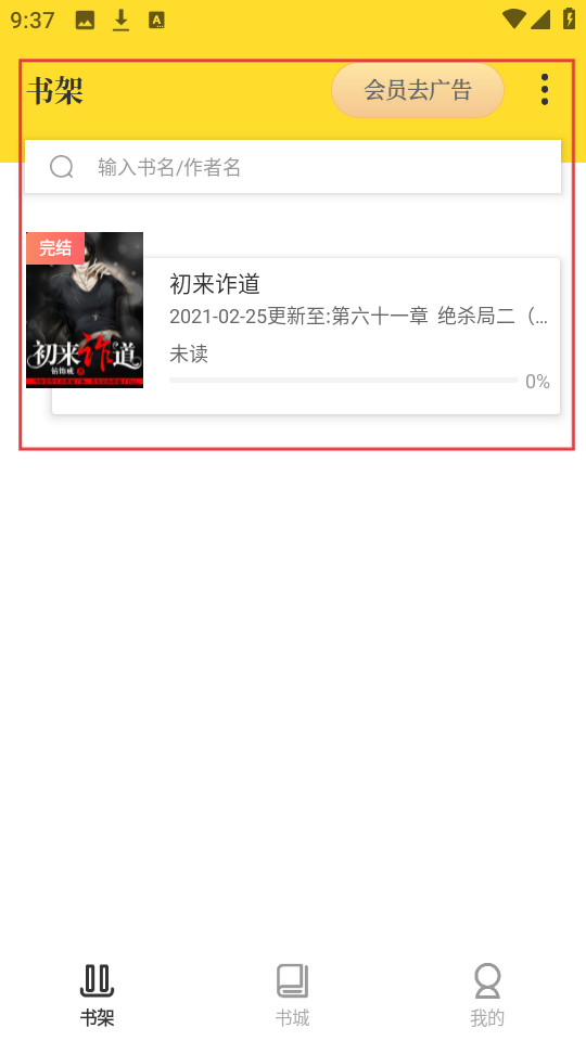4、书架页可看到《初来诈道》,随时可继续阅读,是不是很赞呀。